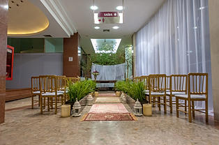 A parte boa para quem está buscando economizar é que eles não cobram aluguel do salão, mas apenas uma taxa de limpeza e forração com as cortinas.